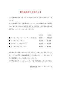 価格改定のお知らせ(2025年8月18日より)
