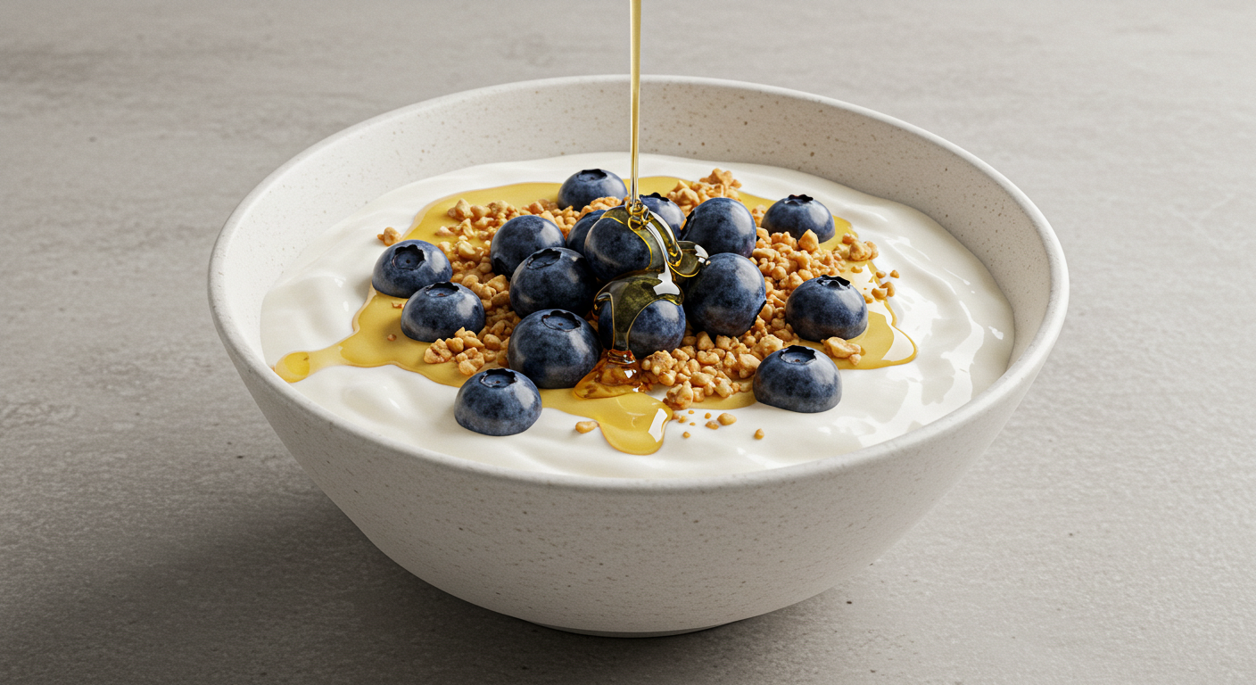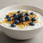 - 器にヨーグルトを入れ、ブルーベリーと砕いたくるみをのせる。