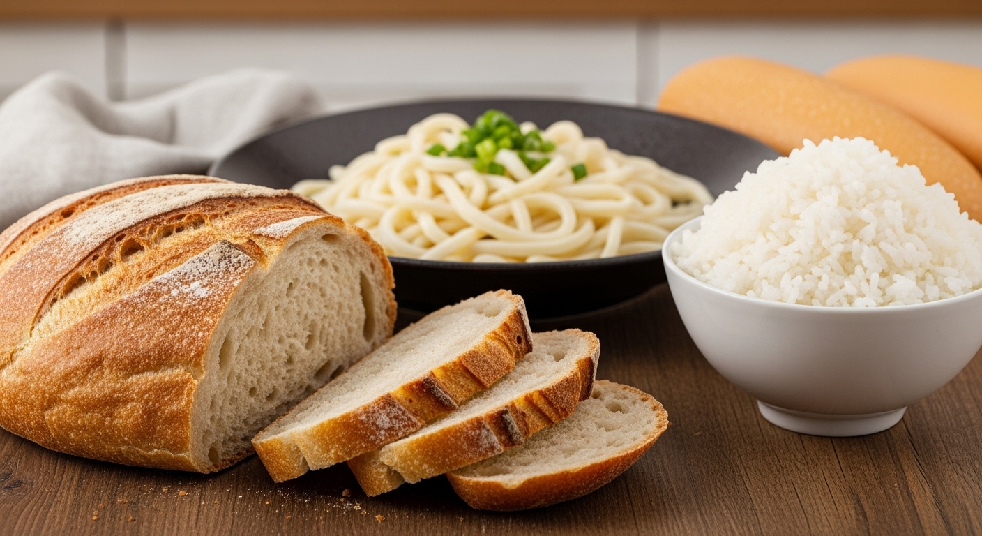 白米やパン、うどんなどはGI値が高く、食後すぐに血糖値が上がりやすい食品です。